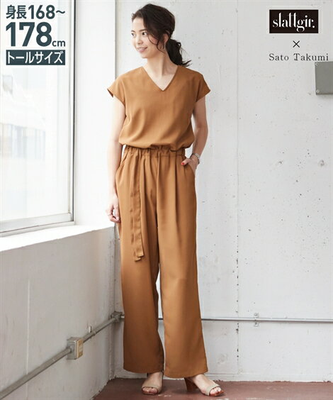ロンパース トールサイズ レディース バックリボン使い ネイビー/ブラウン LL/3L ニッセン nissen