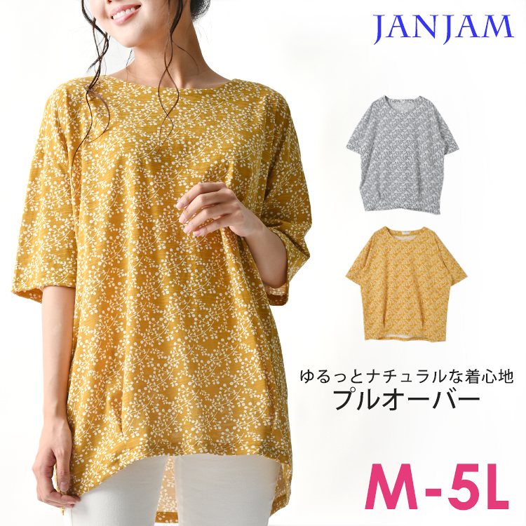 【メール便送料無料】メール便対応 大きいサイズ レディース トップス プルオーバー 総柄プリント 5分袖 ドルマンスリーブ M LL 3L 4L 5L ゆったりサイズ ぽっちゃり女子 プラスサイズ