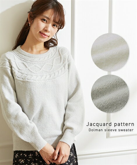 セーター ニット レディース オーロラ ラメ使い ジャガード柄 ドルマンスリーブ 冬 オフホワイト×オーロララメ/杢グレー×シルバーラメ M/L ニッセン nissen
