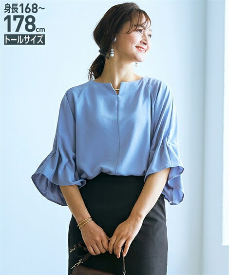 ブラウス トールサイズ レディース バルーン ドルマンスリーブ パーツ付 オフホワイト/サックス M/L ニッセン nissen